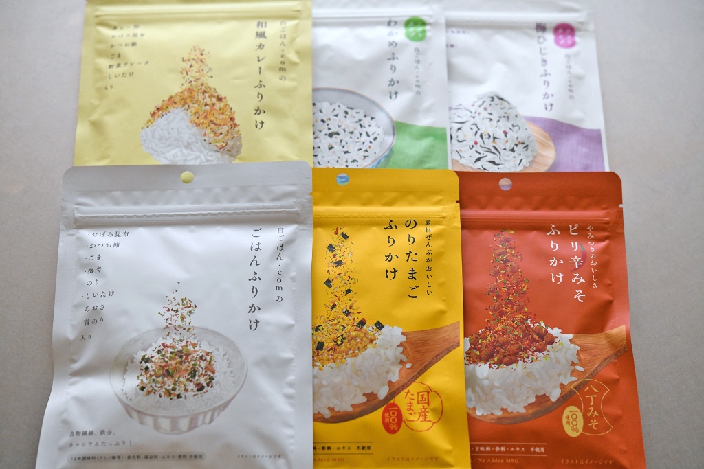 どのふりかけも、特別な原料を使わず、料理に普通に使っている食材や調味料をメインに、美味しさと食べ飽きなさを両立するような味のバランスに仕上がっているかと思います!