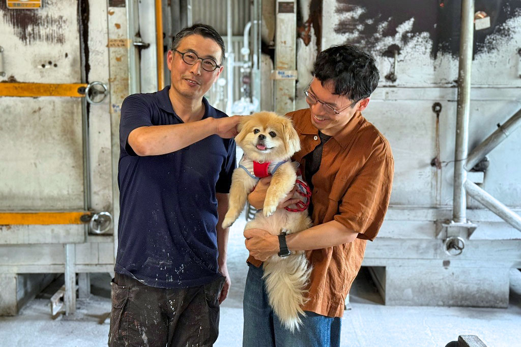 白ごはんcomの器シリーズを作ってくださっている、愛知県瀬戸市の「椿窯(つばきがま)」さん(上の写真は、左が椿窯の林さん、右が僕です)。