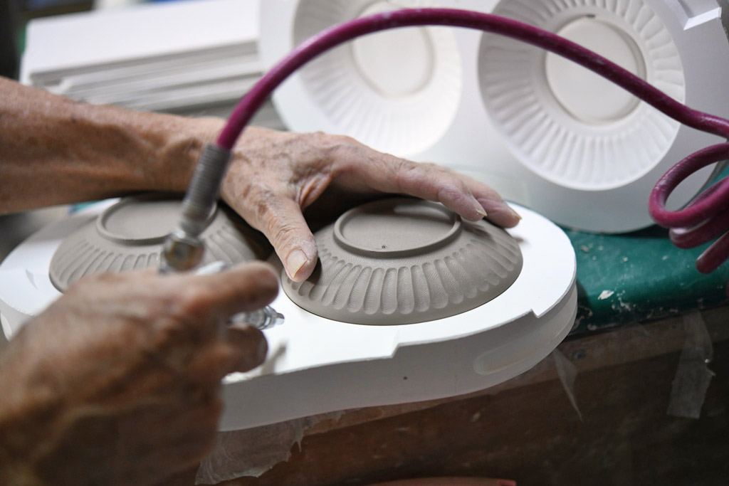 釉薬の説明の前に、器の素材のお話から。この器は、食洗機にかけても割れたり欠けたりしにくい、丈夫な『磁器』で作っていただいています。