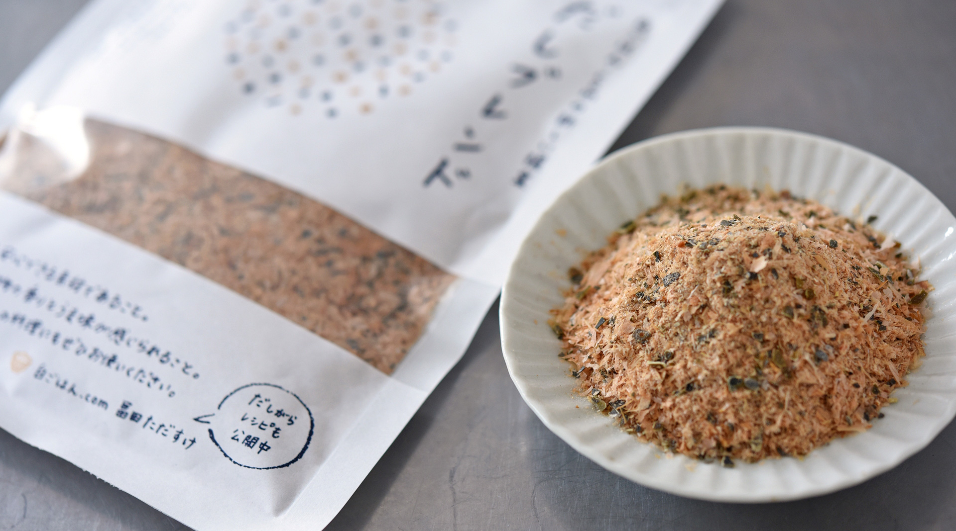 また、昆布とかつお節だけでは、少し上品すぎるだし汁になってしまうため、家庭でみそ汁や煮物にしても美味しい仕上がりとなるよう、隠し味としてあごと干し椎茸もブレンドしています。4つの素材をバランスよくブレンドすることで、コクもありつつ、やさしい旨みが口に広がる家庭的なだし汁になったと感じています。